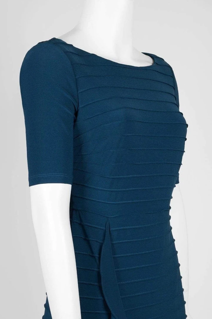 | Details: | Short sleeves, Ribbed bodice, Flutter details, Back zipper, Jersey, Sheath skirt |