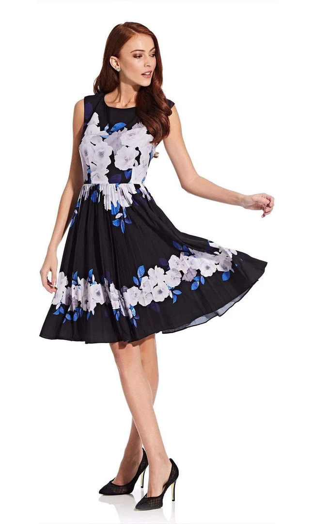 Heighten your charming appeal with this dress from Adrianna Papell AP1D103848. This chiffon cocktail dress dazzles in a sleeveless, bateau neckline with a fitted bodice and a back zipper closure. Styled with gorgeous floral prints, the dress completes its look with a sassy A-line skirt. Be a vamp in an alluring Adrianna Papell dress.
