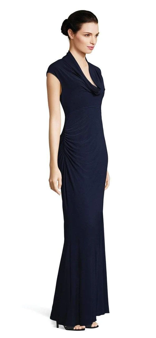 | Details: | Solid jersey fabric, Fitted, Cap Sleeves, Cowl Neck, Side Gathered, Full Length, Full Back |