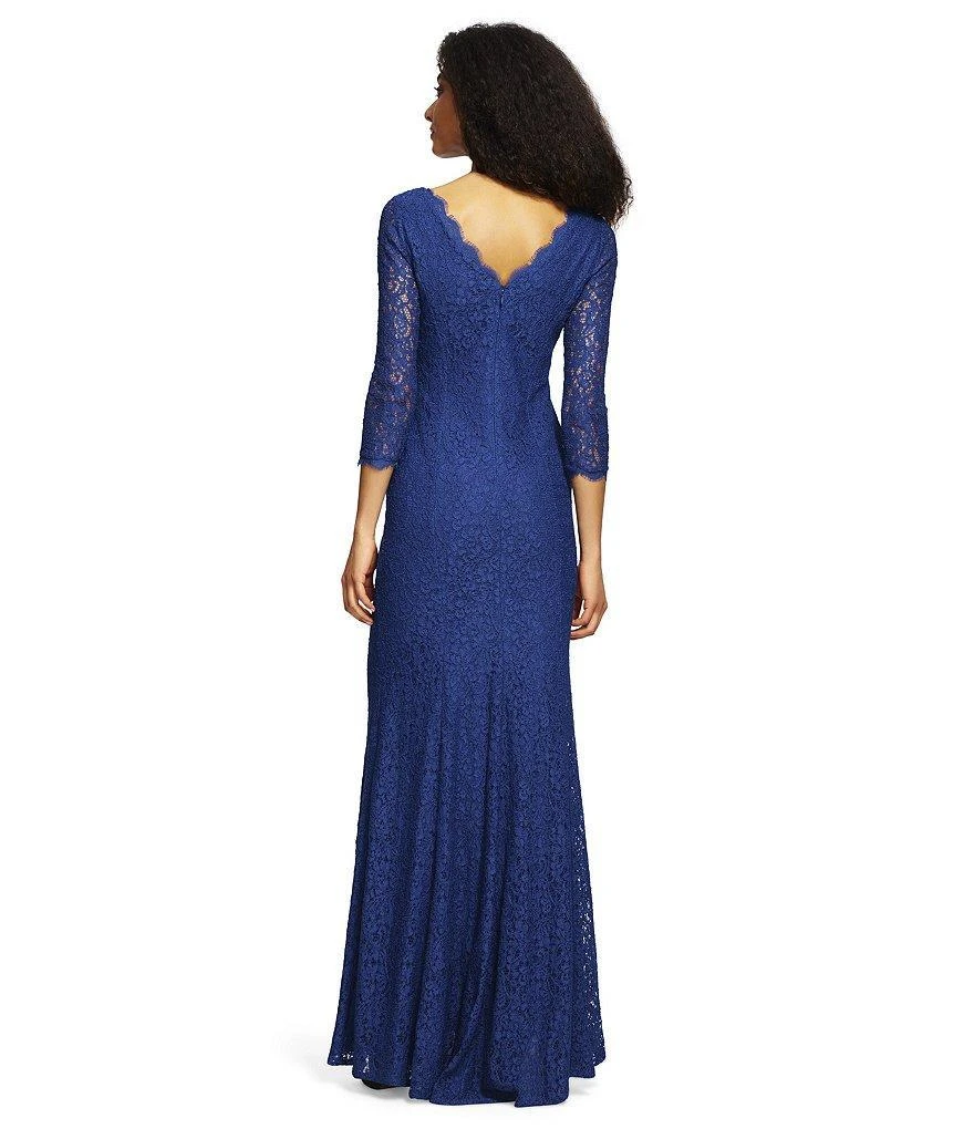 Enter the hall and do that walk of a regal beauty in this Adrianna Papell 091879130. This dress has long sleeves, ankle length lace dress. It has v back and back zipper. Brave the evening with temptress beauty and grace wearing this Adrianna Papell design.