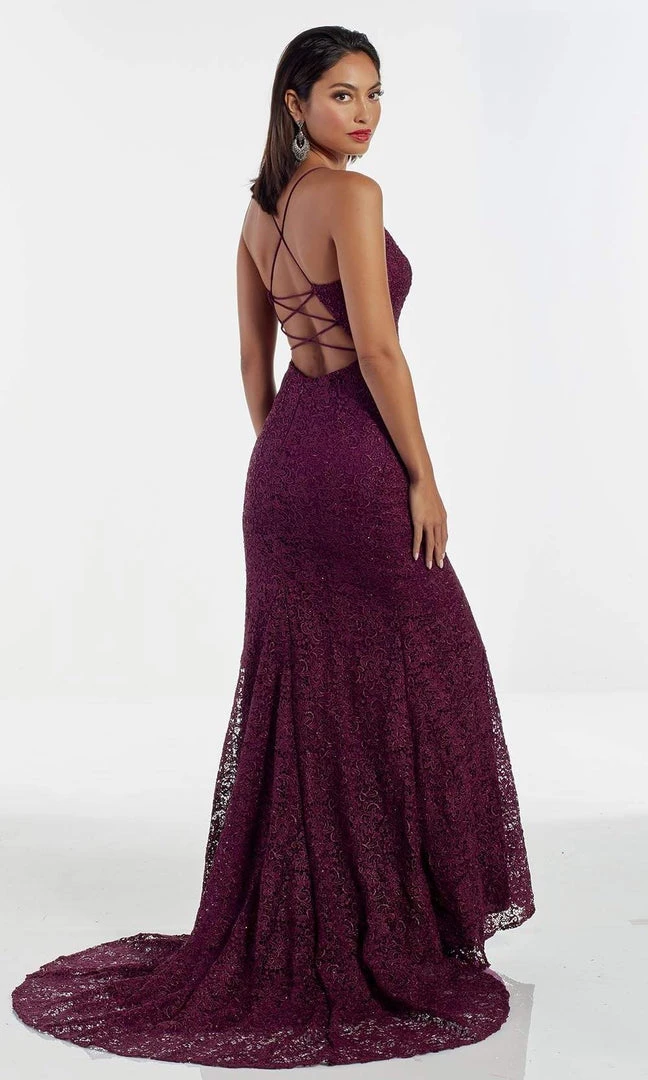 Make such an unforgettable sight at your opulent party when you unveil this classy Alyce Paris 60958 creation. Mesmerizingly crafted in full-length lace, this stunner presents a scoop neckline and a seam fitted bodice that is pulled together from the open back with crisscross spaghetti straps. The skirt is tailored to skim the hips before parting with a thigh-high leg slit as it finishes with a dramatic sweep train. Look as sultry as ever while revealing a sophisticatedly style in this Alyce Paris masterpiece. Model is wearing Black Cherry color.