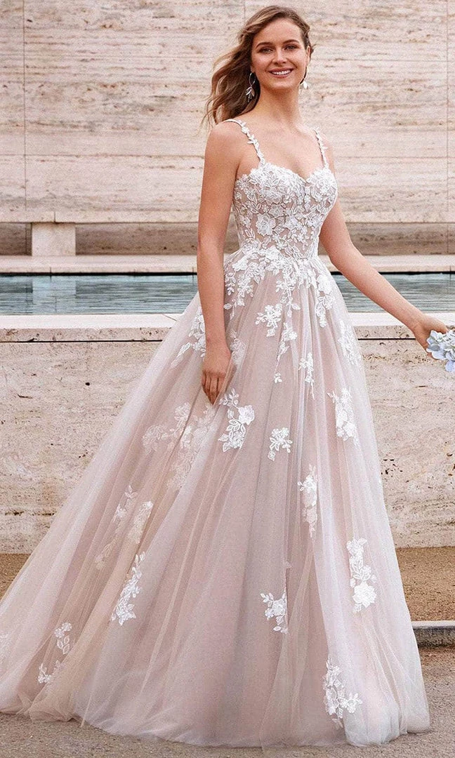 Make an extraordinary statement when you walk in this classy Alyce Paris 7043 masterpiece. Glams in a classic and romantic sweetheart neckline, which is great for accentuating décolletage, as it dips down in the front. Includes a sleeveless bodice decorated with floral lace over a tulle fabric. The back shows off a lace up closure, similar to that of a corset, for a more customizable fit, as the ballgown skirt ends in a dramatic train. Orchestrate your moment to stand out in this Alyce Paris long gown. Models are wearing Ivory and Latte colors.