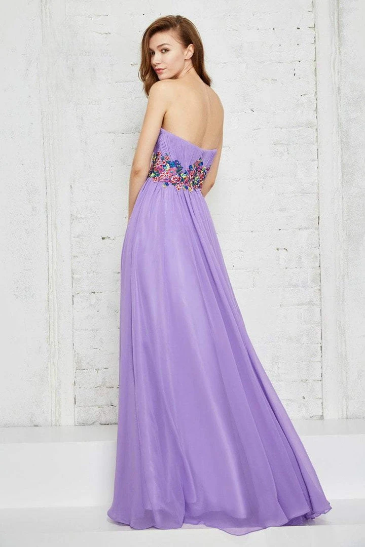 Stand out in every occasion with this daring creation by Angela & Alison 771143. The dress parades in a strapless sweetheart neckline chiffon dress with ruched bodice and multi-colored embroidered waist detail. The dress also features a mid-open back and an A-line skirt. Make it a romantic occasion with this dress by Angela and Alison.