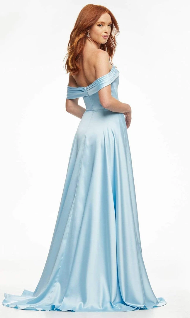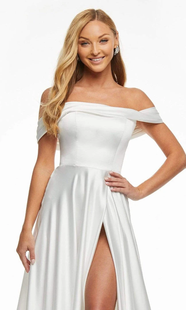 Appear in elegance in this Ashley Lauren 11091 evening dress. This dress highlights an off shoulder neckline in a full length bodice with princess seams. The skirt, with slit, reveals an A-line silhouette while the back shows a mid-open back with back zipper closure to complete the look. Look immaculately gorgeous in this Ashley Lauren masterpiece.
