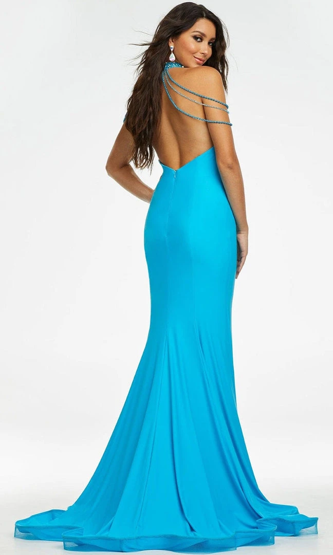 Make an extraordinary statement when you walk in this classy Ashley Lauren 11170 masterpiece. This elegant gown showcases a sleeveless and high halter neckline with beaded and crystal embellishment draped on the shoulders. The back flaunts a low open-cut secured with a back zipper. It parades a full length mermaid silhouette finished off with a horsehair hem and sweep train. Turn yourself into a timeless beautiful goddess in this creation by Ashley Lauren. Ashley Lauren is one of the most popular brands to look for this year offering endless options in special occasion dresses.