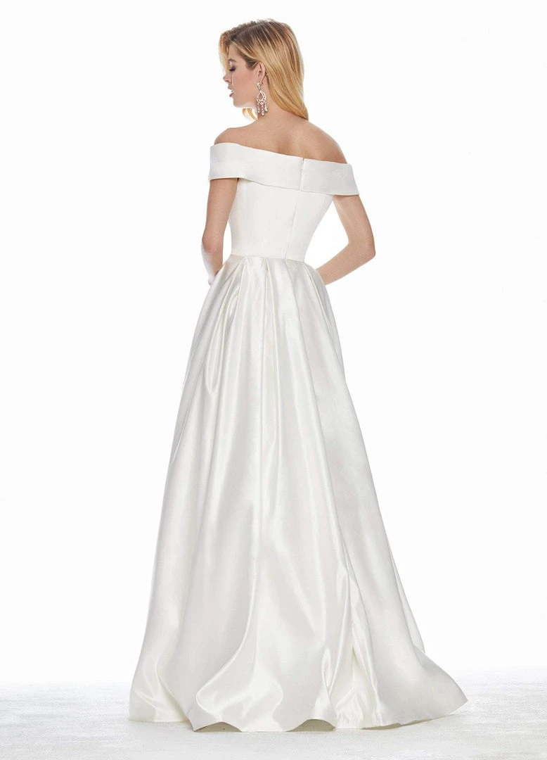 Look fabulous for your event in this romantic evening gown by Ashley Lauren 1343. Beautifully crafted in heavy satin fabric, this stunning gown features an double pleated off-the-shoulder neckline , with surplice style bodice and a full length A-Line skirt. The dress closes with back zipper closure and finishes with a subtle sweep train. This elegant special occasion dress by Ashley Lauren would make a perfect gown for Prom, pageant, Black tie event or at any formal gatherings.