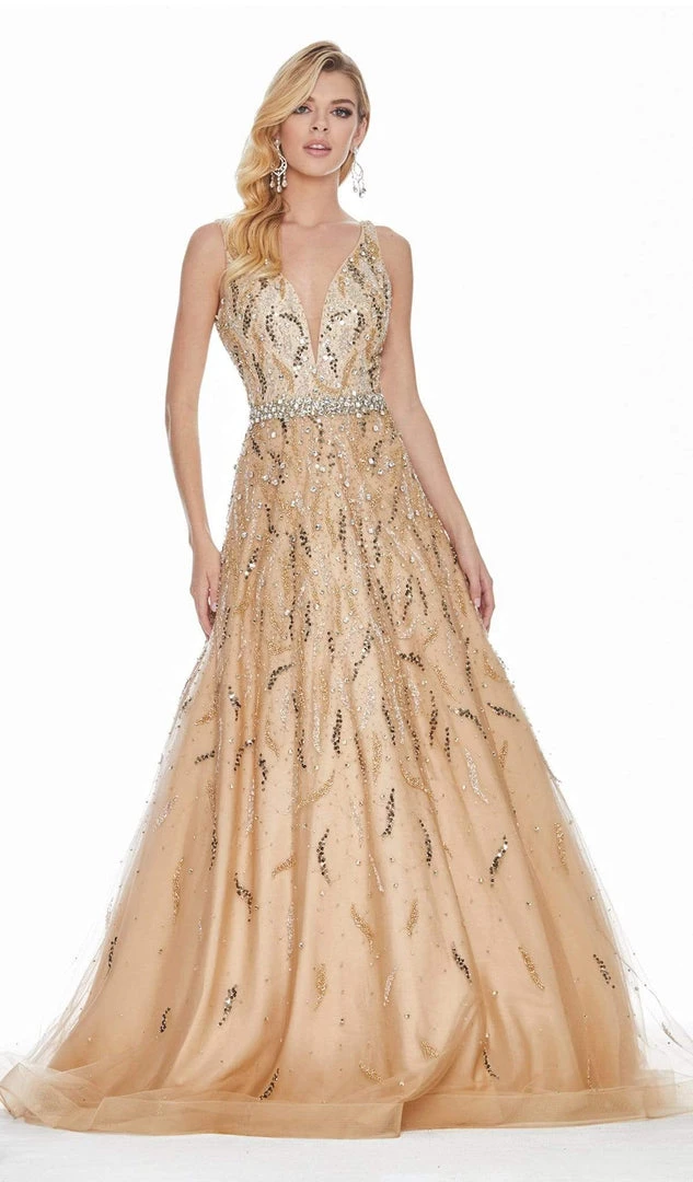 Ashley Lauren – 1364 Beaded Deep V-neck Tulle Ballgown