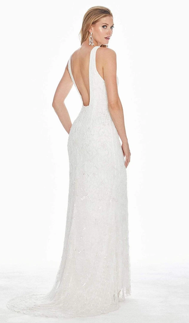 Look absolutely classy in this stunning evening gown by Ashley Lauren 1431. Hand beaded sequins adorn the whole ensemble for a shimmering effect. The fitted bodice features an illusion jewel neckline and sheer plunging V panel complemented with an open back. This gown has a sheath silhouette that gorgeously cascades to the floor completed with a sweep train. Get noticed in this radiant Ashley Lauren piece.