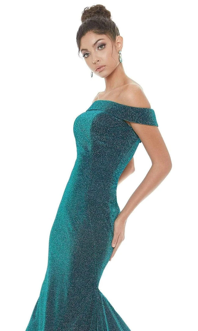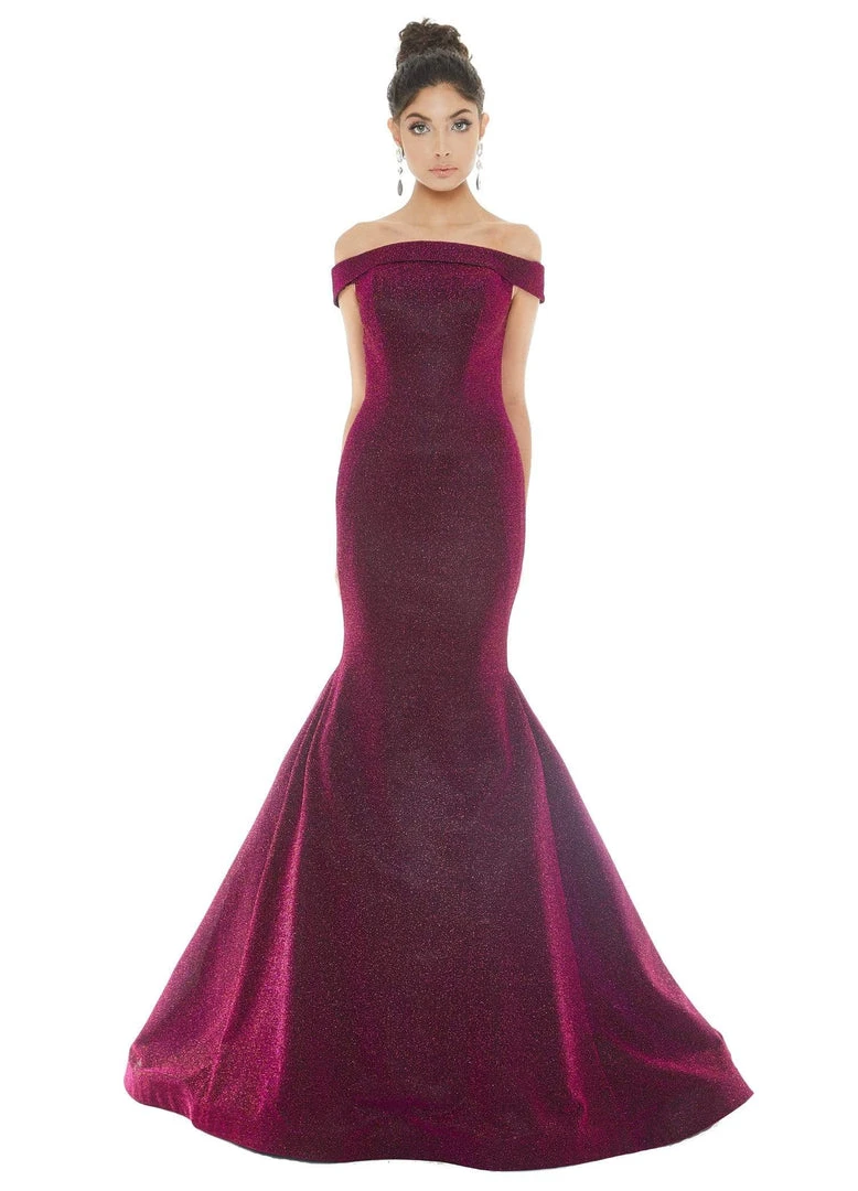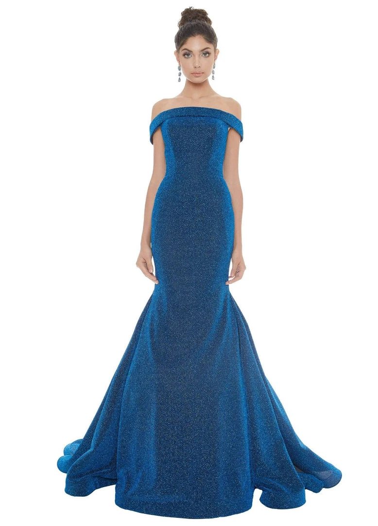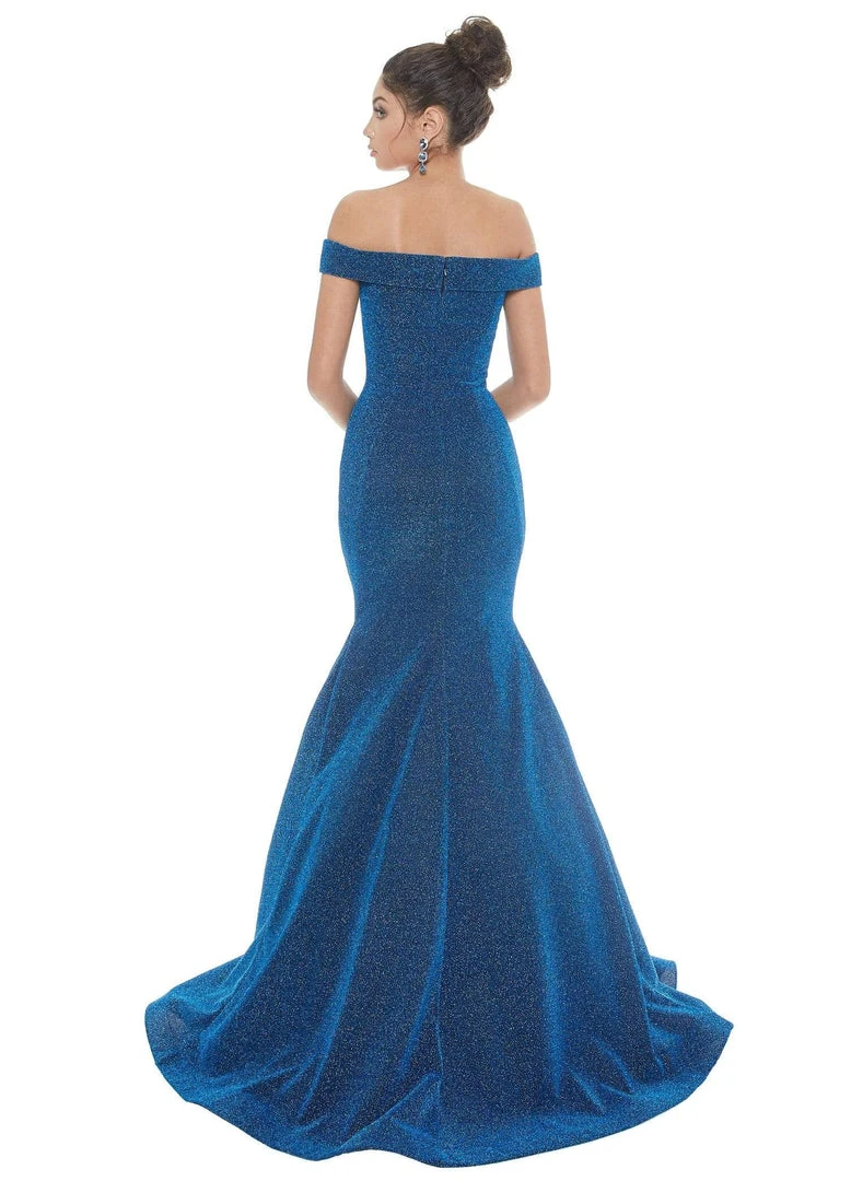 Look lovely in this timeless dress by Ashley Lauren 1606. Made of metallic scuba fabric, this long gown shows off in an off the shoulder neckline with fitted bodice styled with a zipper closure. The skirt forms a defined mermaid silhouette and finishes in a sweep train. Dazzle in this evening dress by Ashley Lauren.