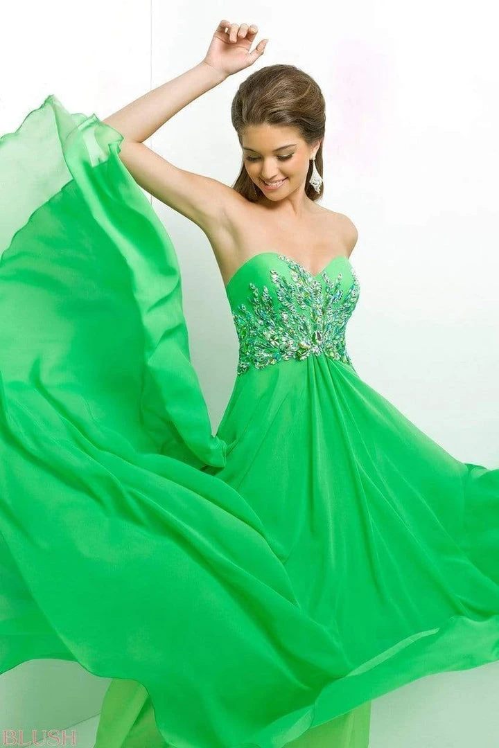 Dance the night away in this gorgeous Blush 9710 design. Tonal jewels and silver beads drape up your bodice as a full skirt showcases your silhouette. Walk the red carpet in style wearing this fabulous Blush style.