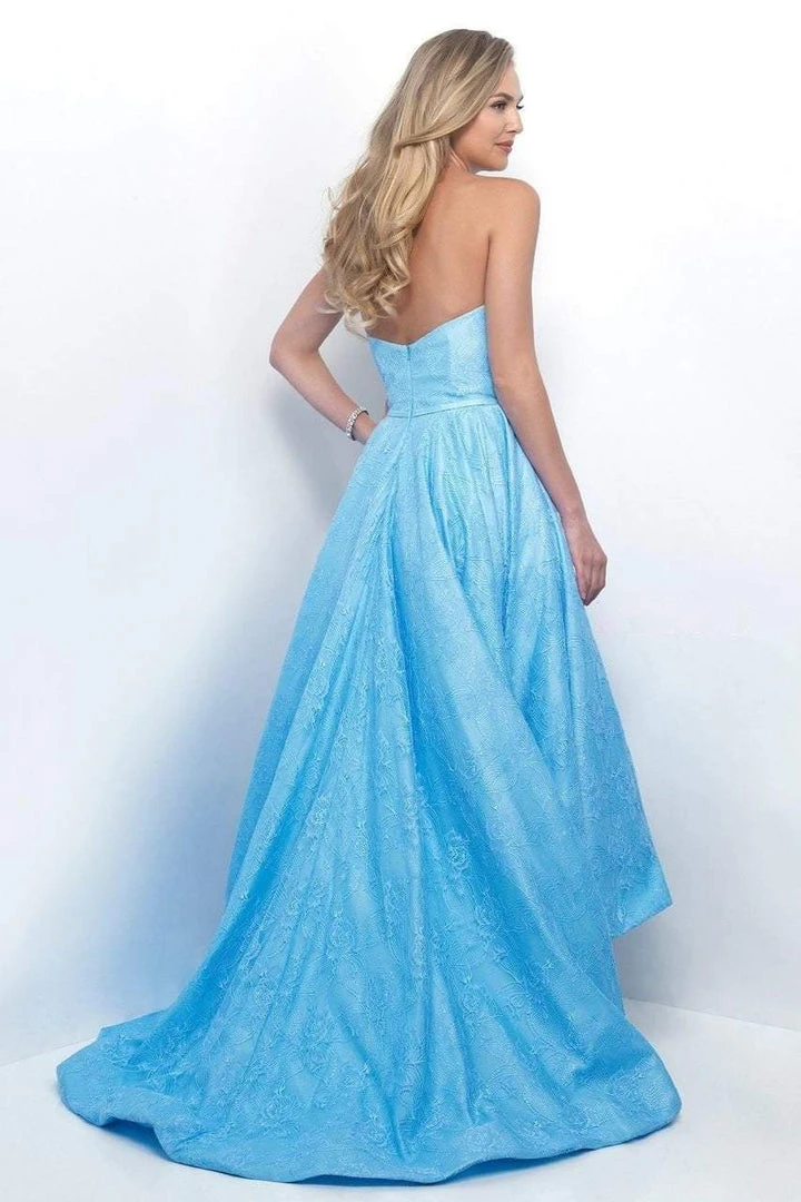 Be that embodiment of delicate beauty in this dainty lace creation by Blush 5628. Wrapped with an intricate floral lace fabric on a seam-sculpted bodice, the delicate darling features a strapless, sweetheart neckline and a mid-open back. Gathered at the waist with a slim ribbon accented band, the gorgeous pleated skirt immaculately courses down to a spectacular high-low hem with a sweep train. Walk with pure beauty in this exquisite masterpiece by Blush.