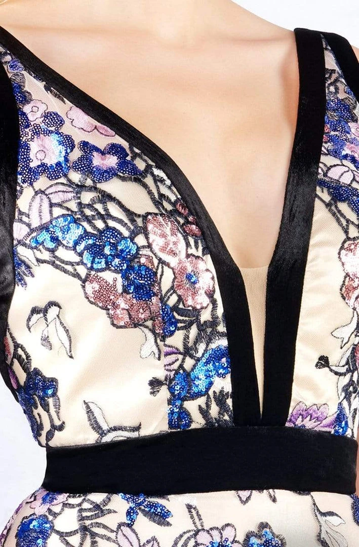 Bring a breath of spring to your special event with this delectable dress by Cassandra Stone 40898. This dress is fully sequined in multi-color styles with a fitted bodice framed with a plunging V neckline adorned with sheer inset detail at the bust. Soft ripples adorn the a-line skirt as it tapers to full length. The low scoop back is secured with a center zipper closure. Go beyond beautiful in a precious gown from Cassandra Stone.
