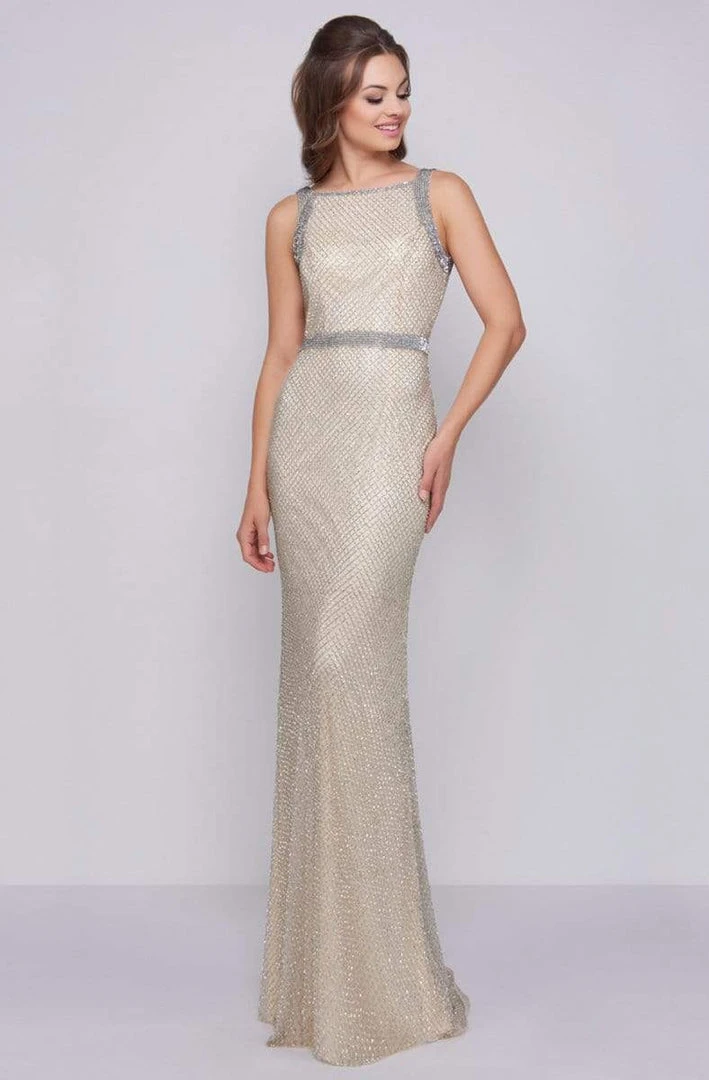 Turn yourself into a timeless beautiful goddess in this evening dress by Cassandra Stone 4709. This framed sleeveless dress has square neckline and backless design with drape accent. Shimmering tonal beaded net forms the overlay on the sheath silhouette dress. The skirt has a distinct fitted shape with a full-length hem and subtle train finish. Feel magnificent for your special night out in this Cassandra Stone creation.