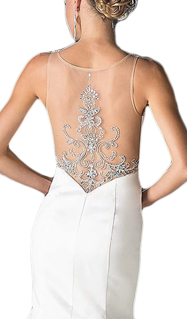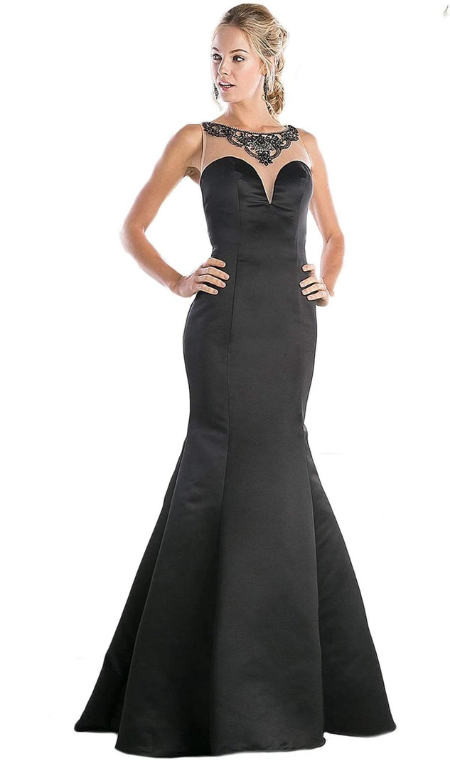 Make yourself into a vision of loveliness in this spectacular evening gown by Cinderella Divine CK62. The sculpted bodice is sleeveless and boasts an illusion bateau neckline and sheer back with bead embellishment. At the natural waistline, the style moves into the smooth sheen of a floor length mermaid skirt. Get that superstar style in this amazing ensemble by Cinderella Divine.