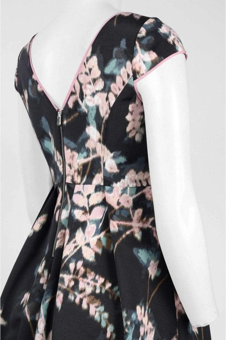 Radiate that artsy fartsy appeal without sacrificing style and poise in this spectacularly printed Adrianna Papell AP1D100550 creation. Basking in the lovely contrast on pastel floral print on a dark background, this lovely piece showcases a piping embellished bateau neckline with dainty cap sleeves and a v-cut open back. Tailored with sectional seams for that perfect fit, the box pleated A-line skirt flares spectacularly down to a short hemline. Embrace your quirky and feminine side as you don this charming Adrianna Papell masterpiece.