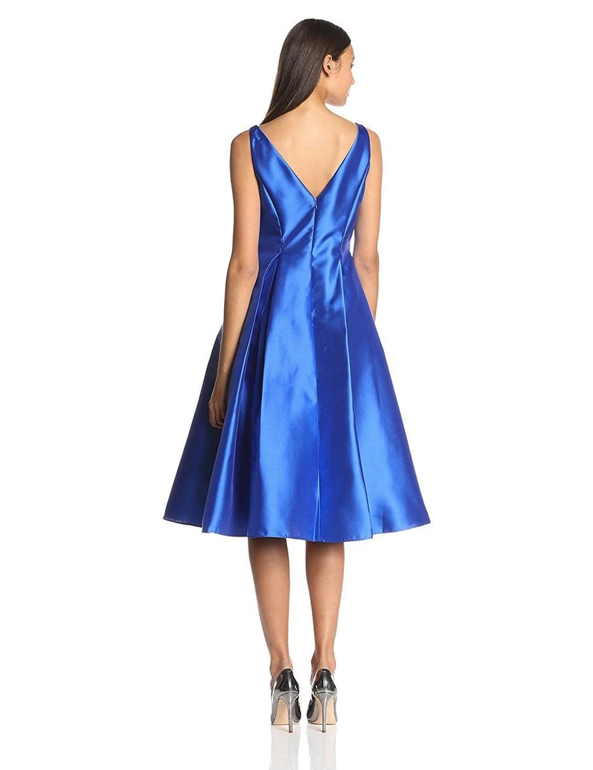 Feel pretty and free wearing Adriana Papell 041899070 tea Length satin twill dress. Features a v-cut back, pleated A-line skirt. Luxe and elegant, this beautiful Adriana Papell tea length dress is perfect for any special occasion