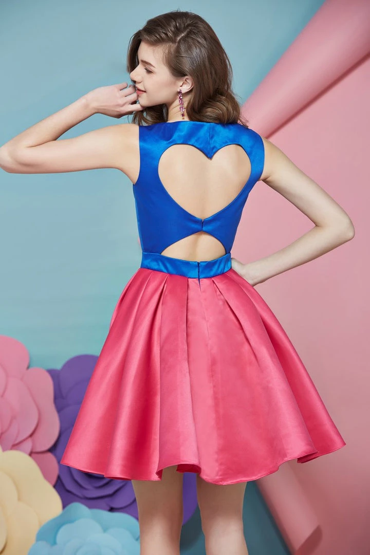 This deceptively simple dress presents a modest bateau neckline only to reveal a beguiling heart-shaped back cutout. Meld modesty and boldness, with bright colors and smooth lines.
