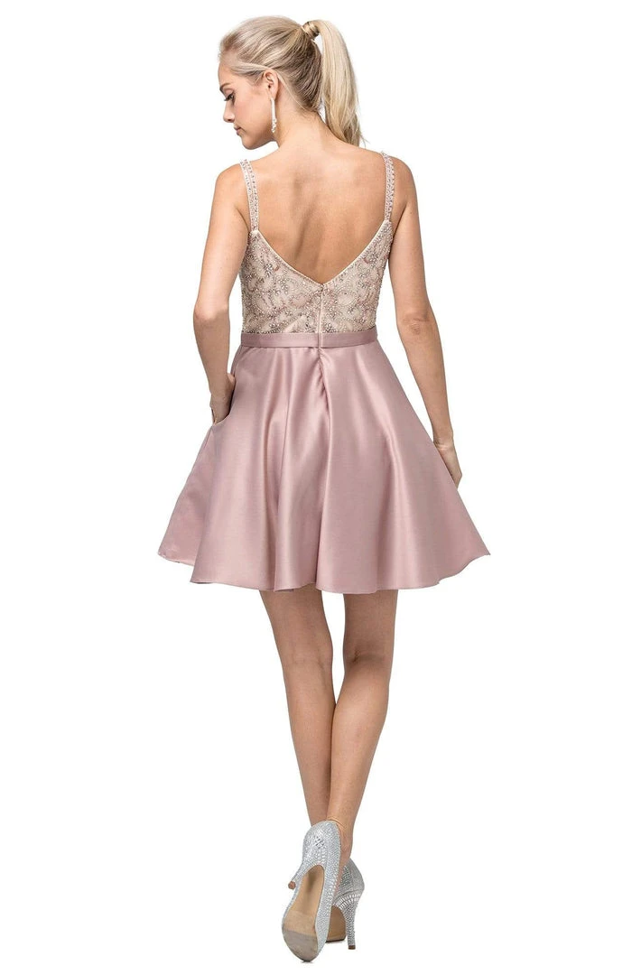 Enter the party and do that walk of a regal beauty in Dancing Queen 3125. This cocktail dress pleases in a sleeveless, sweetheart neckline with shoulder straps. The fitted bodice is ornate with detailed beading and features a V-back with a zipper closure. The waist is wrapped in a thin band and begins a mid-thigh A-line skirt with pockets. Mesmerize the crowd with your sophisticated flair in this Dancing Queen masterpiece.