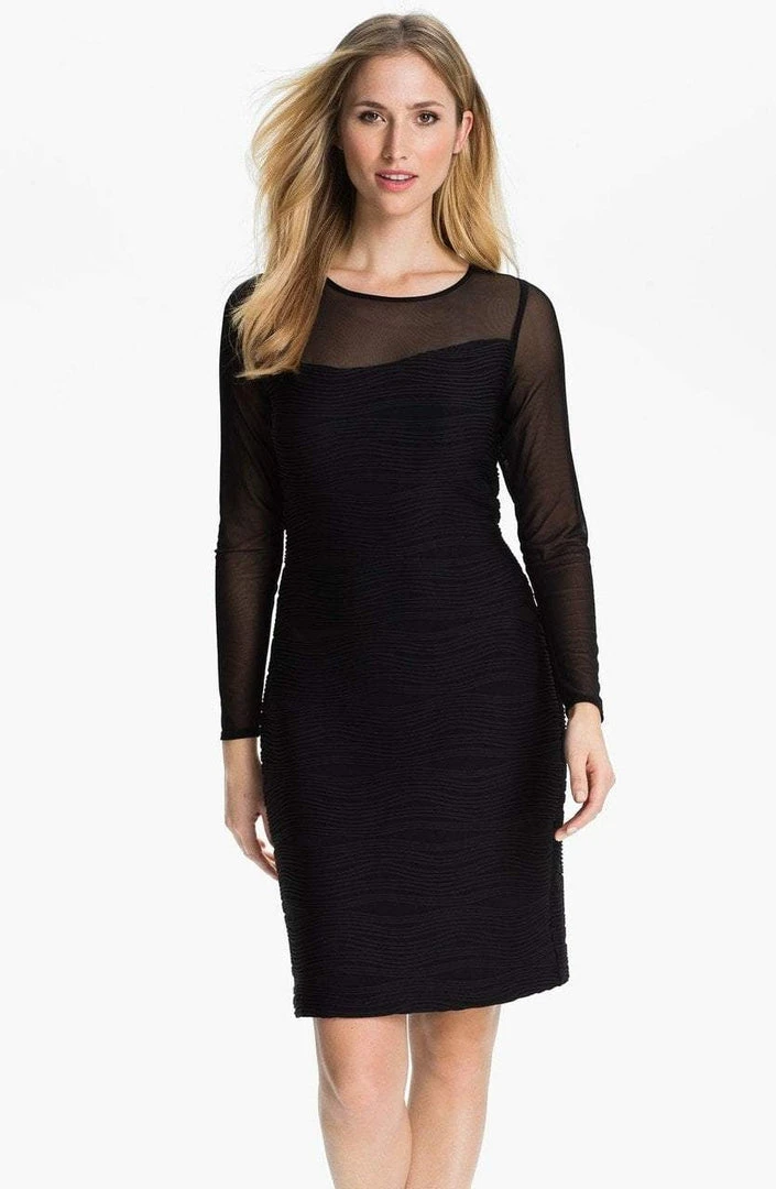 | Details: | Wave Textured Jersey, Illusion Yoke, Sheer Long Sleeves, Asymmetrical Illusion Back, Mesh Full Back, Knee Length Hem |