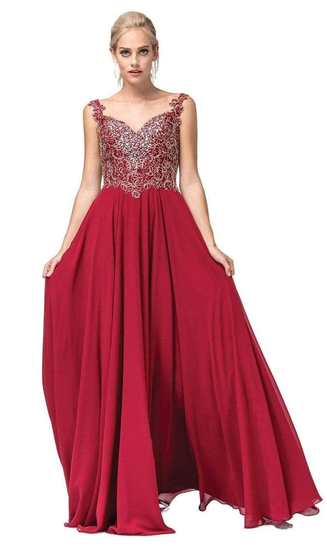 Look so sophisticated and statuesque in this sumptuously styled Dancing Queen 2818 gown. Matching your elegant persona, this stunner features subtle lace-appliqued cap sleeves and a V-neckline bodice exquisitely adorned with sparkling jewel beads and lace embroidery appliques. The back reveals a corset style with the hidden zipper closure at the center. The immaculate chiffon skirt flows softly to a flowy full-length hemline. The perfect details of this stunning masterpiece makes it the best choice at your Prom, Military Ball or at any formal evening event. Model is wearing Blush color.