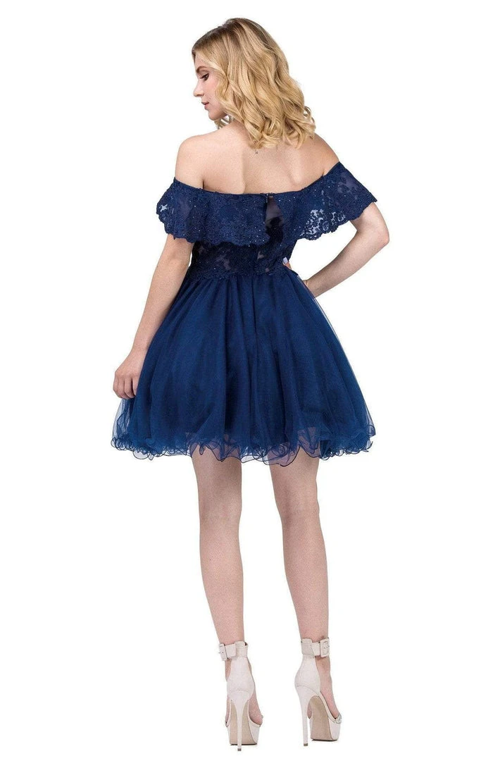 Show off your sophisticated fashion sense of style with this lovely ensemble by Dancing Queen 3016. This fabulous silhouette features an off the shoulder neckline with ruffle detail and beaded lace bodice. The A-line skirt is beautifully tailored in tulle which ripples in pleats to the mid-thighs and finishes with curled hemline. A center zipper closure secures the mid-open back. Have a blast at your next social event with this Dancing Queen creation.