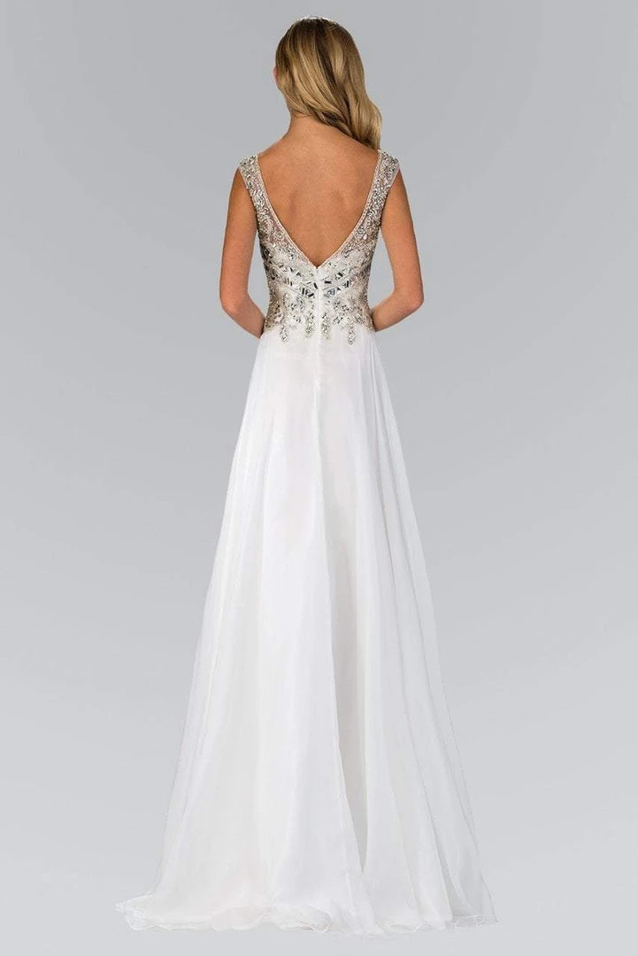 Be ready to fascinate everyone in this evening dress by Elizabeth K GL2010. The dress showcases a sleeveless, v-neckline, jeweled bodice, v-shaped back, and chiffon A-line silhouette skirt. This Elizabeth K creation is truly remarkable!