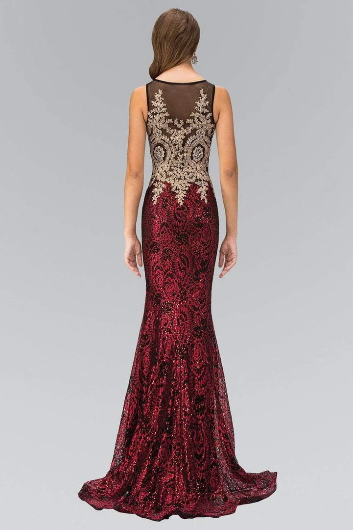 Be the lady of the night in this gown by Elizabeth K GL1319. This lace long gown features a bateau neckline of sheer fabric with appliques fully-cover the top. This look is completed with the elegant fit and flare skirt. This Elizabeth K creation is sure to make you the darling of the party!
