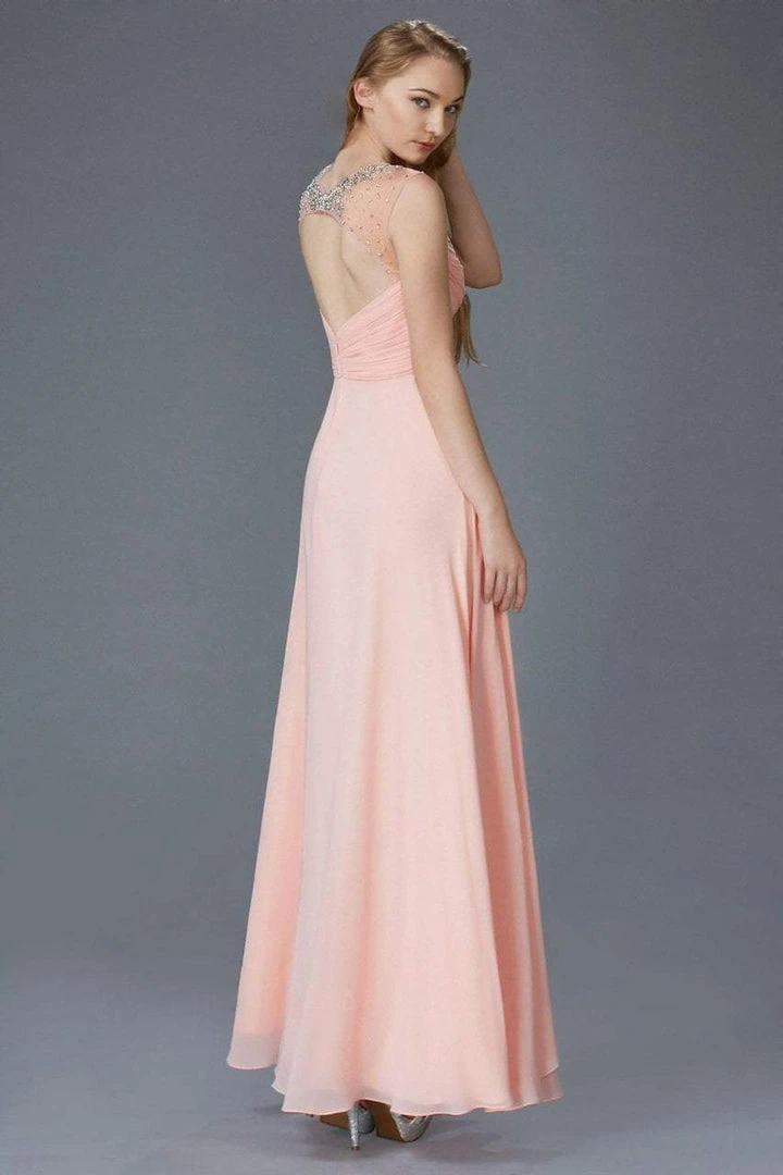 Be a knockout at every important occasion in this ornate shimmering creation by Elizabeth K GL2023. Showcasing crystal-adorned ruching on the fitted bodice, this gorgeous piece features a lovely sweetheart neckline framed with tapering sheer straps and a diamond cutout back. Gathered at a peaked front, the chiffon A-line skirt pleats divinely down to a rich full-length hem. Glow with pure femininity in this elaborately chic Elizabeth K masterpiece.