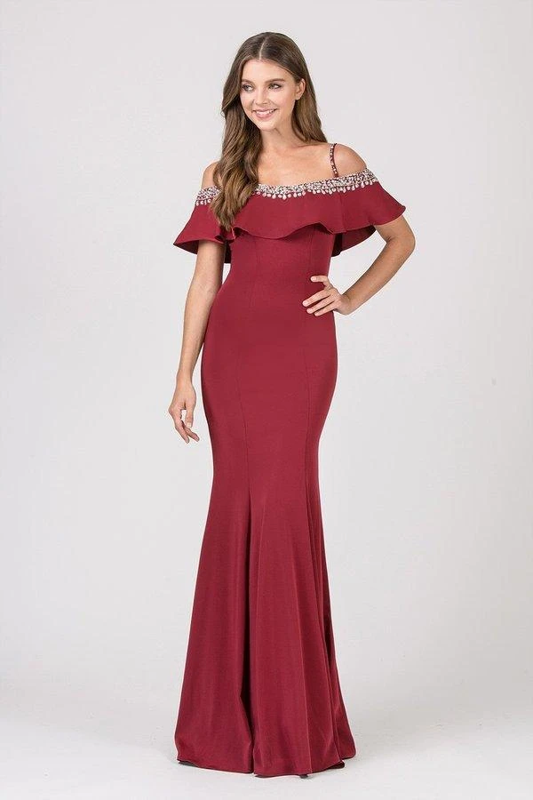 Dazzle everyone by the sheer elegance of this exceptional Eureka Fashion 7333 creation. Draped along the arms with a ruffled overlay festooned with jewels, this beauty captures with an off shoulder neckline supported by straps. Defined with a cold shoulder design and a mid-open back, the bodice is contoured along with its softly draping mermaid silhouette and a train. Look striking in this breathtaking Eureka Fashion masterpiece.