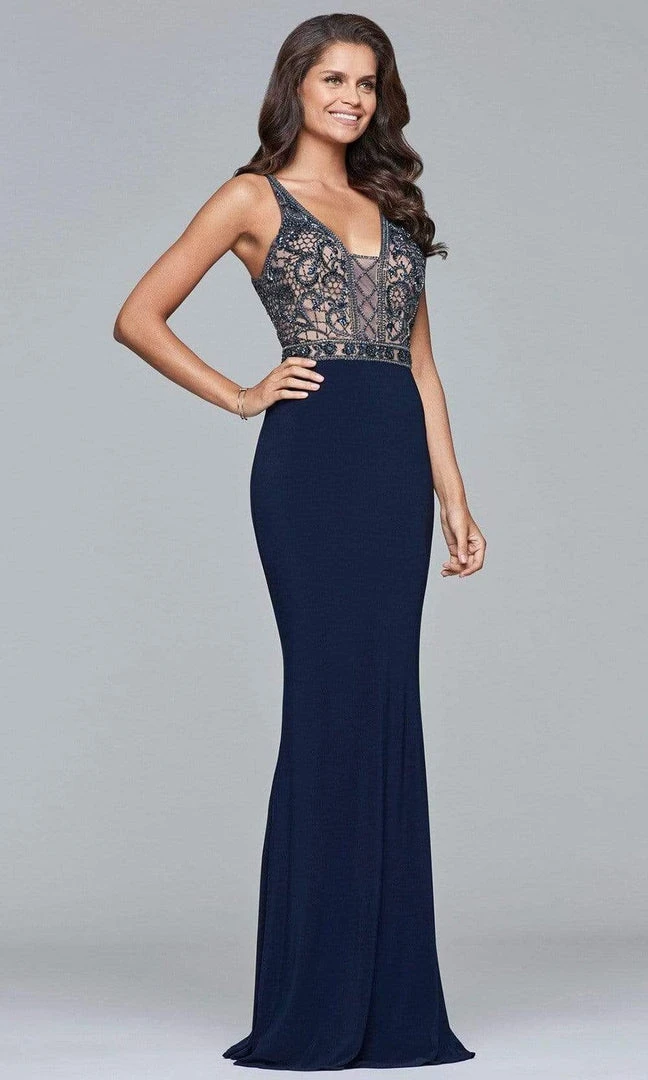 Shine on in a glistening evening dress from Faviana S10092. This irresistible sheath gown features beautiful beading on the top, straps, and the back as well as a cut out back that is the right amount of skin. This jersey dress has a smooth skirt which stands in full length as it finds it’s gracious way to the floor. This exquisite and sophisticated Faviana creation will definitely make you feel special! Model is wearing Navy color.