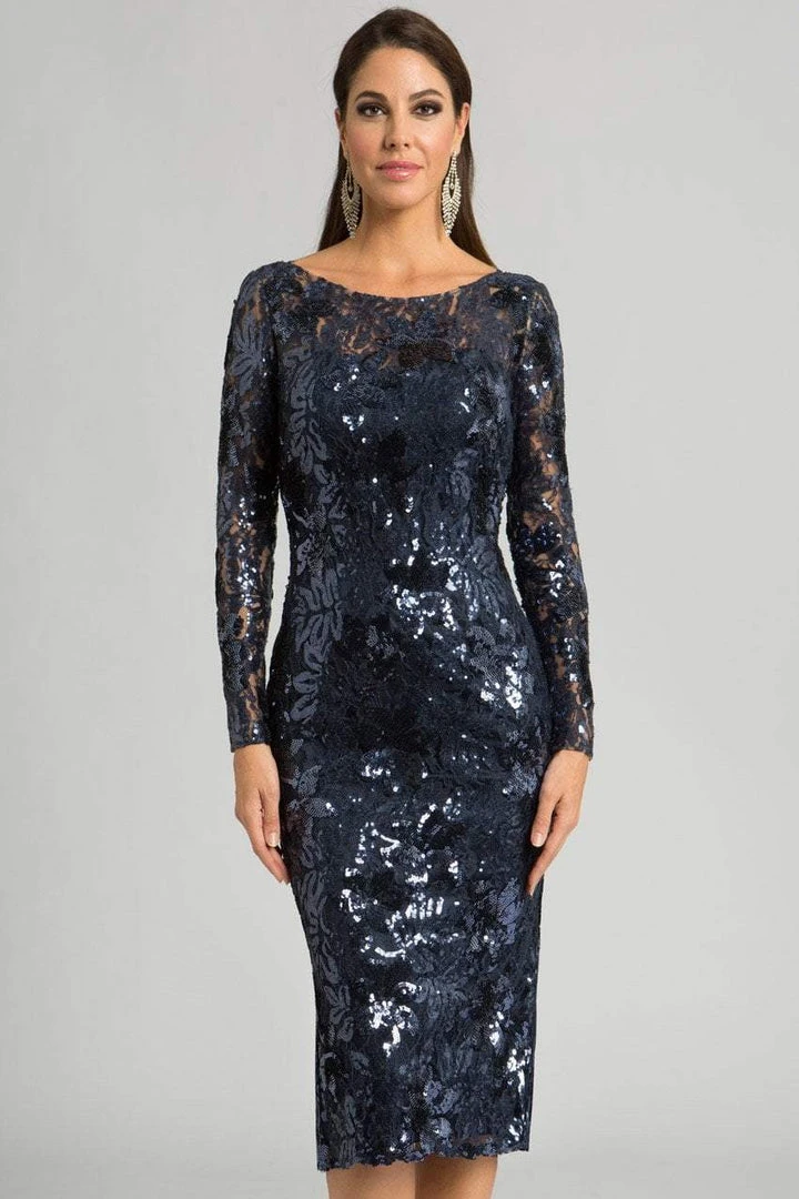 Look jaw dropping in this dramatic Feriani Couture 18613. A sheer bateau neckline and long sleeves embroidered with shimmering beads and sequins. The tea length adds sexiness of the dress. This Feriani Couture is classic look that works for many special occasions.