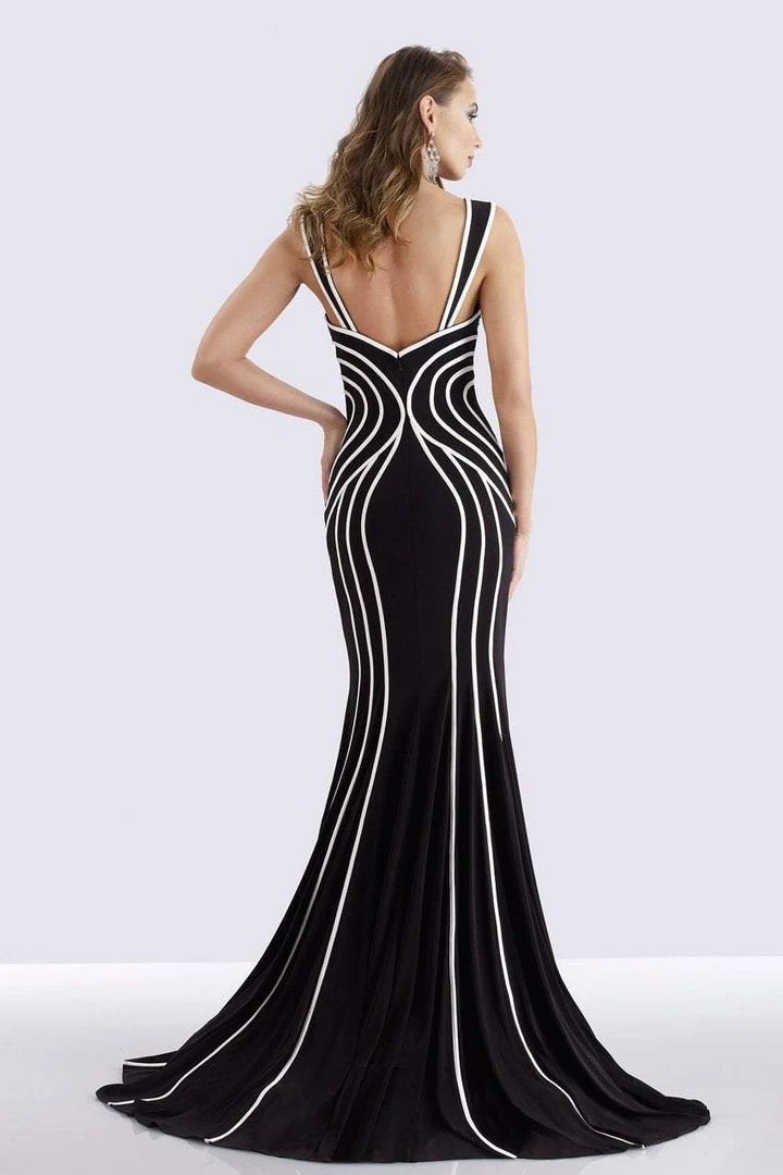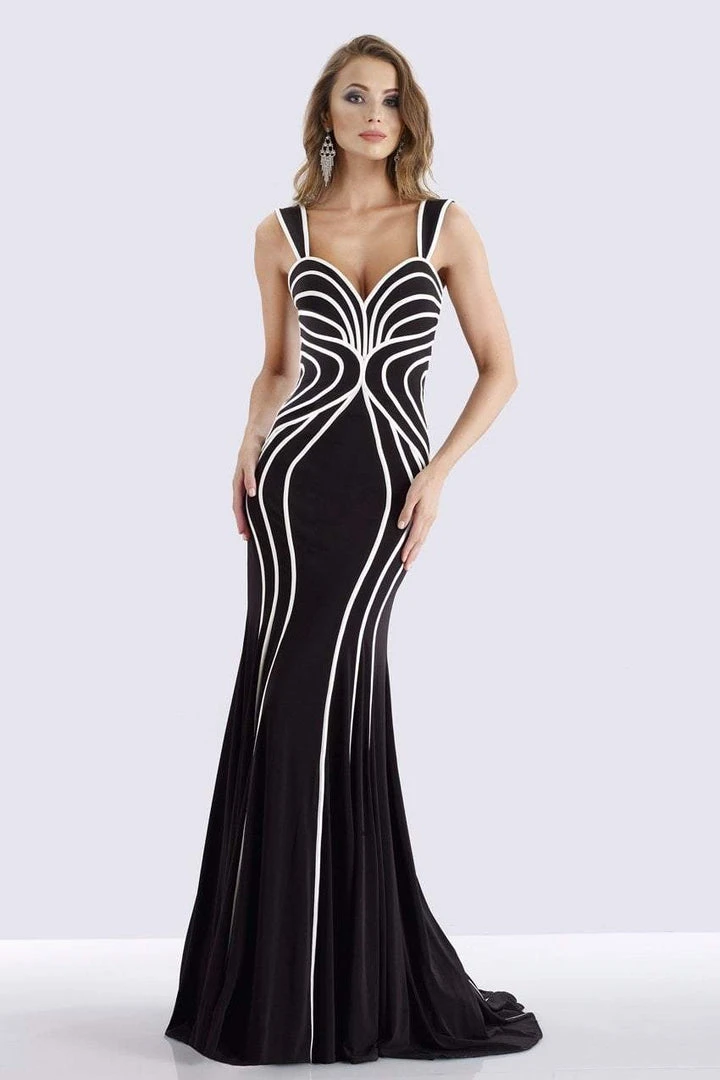 Look fantastic for your next formal event in this evening gown by Feriani Couture 26270. Flaunts a sleeveless, sweetheart neckline with wide straps. The bodice is designed with two tone line patterns that accentuate the curves of your body. The back has a zipper closure while the skirt runs in full length hem with a sweep train finish. A picture of sophistication in this dress by Feriani Couture. Model is wearing Black/White color.