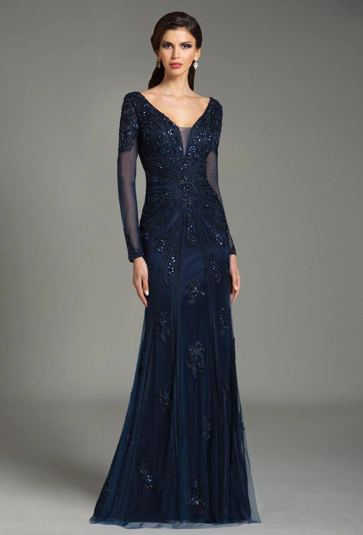 | Details: | Sheer long sleeve, Beaded, Ruched, V-shaped back, Back zipper closure, Sweep train |