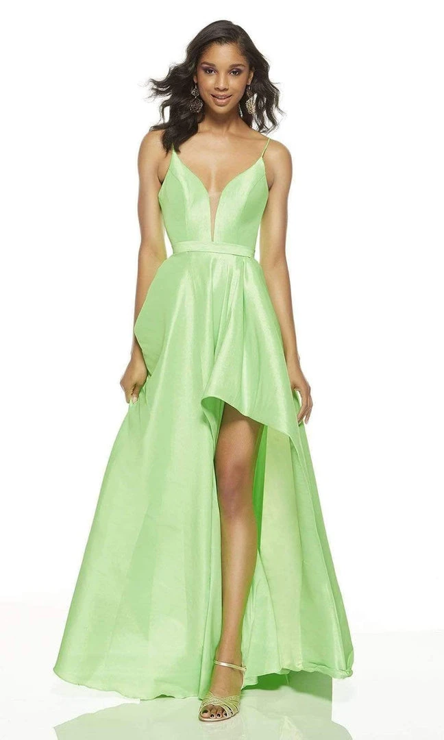 Be strikingly beautiful as you capture that outstanding presence in this captivating Alyce Paris 60394 long party dress. Fabulously crafted in bold Stretch Taffeta, this special occasion outfit brandishes with a dipped V-neckline secured by a mesh insert at the center. The fitted seam sculpted bodice is held by fine strand over the shoulder straps leading to the flattering open back with strappy details. The flowy skirt has pockets on each side of the hips, and features a subtle high-low detail along the front as it finishes at floor length. You are more than gorgeous when you wear this unbeatable prom dress by Alyce Paris!