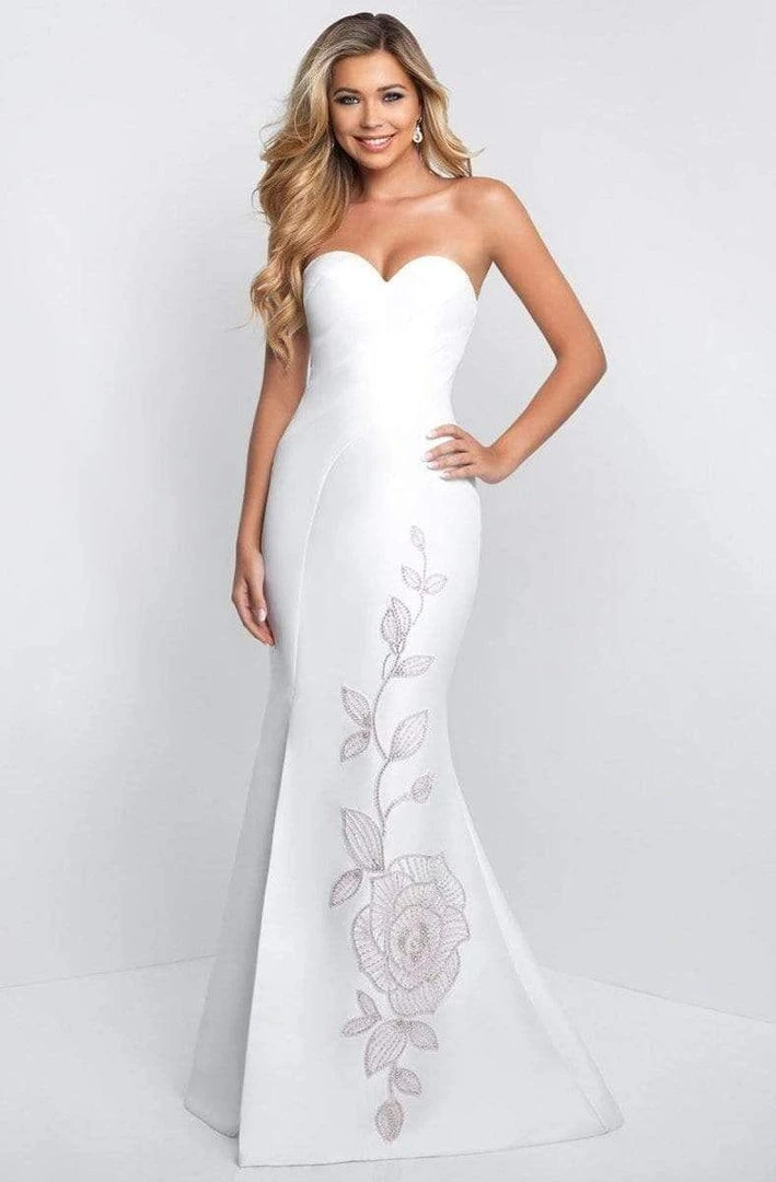 Project glamour in this unique dress by Blush C1016 at your senior prom. This one of kind gown graces in a strapless, sweetheart neckline with fitted bodice styled with asymmetric seam detailing. The mermaid long skirt silhouette is embellished with beaded floral detailing on one side for dramatic effect. This Blush ensemble is sure to make you the darling of the party!
