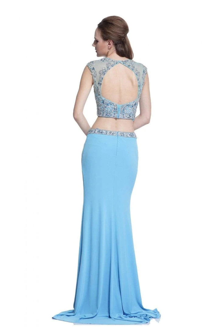 Capture attention as you show up in this stunning Cinderella Divine C211 evening dress. Striking bead embellishments design the fitted bodice and waist for a shimmering effect. This two piece ensemble showcases a fitted bodice with an illusion jewel neckline, complemented with a back cutout detail. The sheath skirt features a side slit to perfectly highlight your leg, completed with a sweep train. Glamour gets gorgeous with this Cinderella Divine creation.