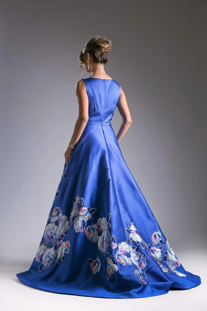 Go for a timeless and sophisticated look wearing this prominent evening gown by Cinderella Divine CA303. This elegant satin gown gets a glam twist with floral print on the ballgown skirt. Features a classy bateau neckline and seam lined sleeveless bodice and natural waistline. Side hand pockets are hidden into the natural folds of the skirt. This creation by Cinderella Divine is designed with sophistication in mind, it is your perfect choice for prom or at a formal evening event. Find more sweet sixteen dresses!