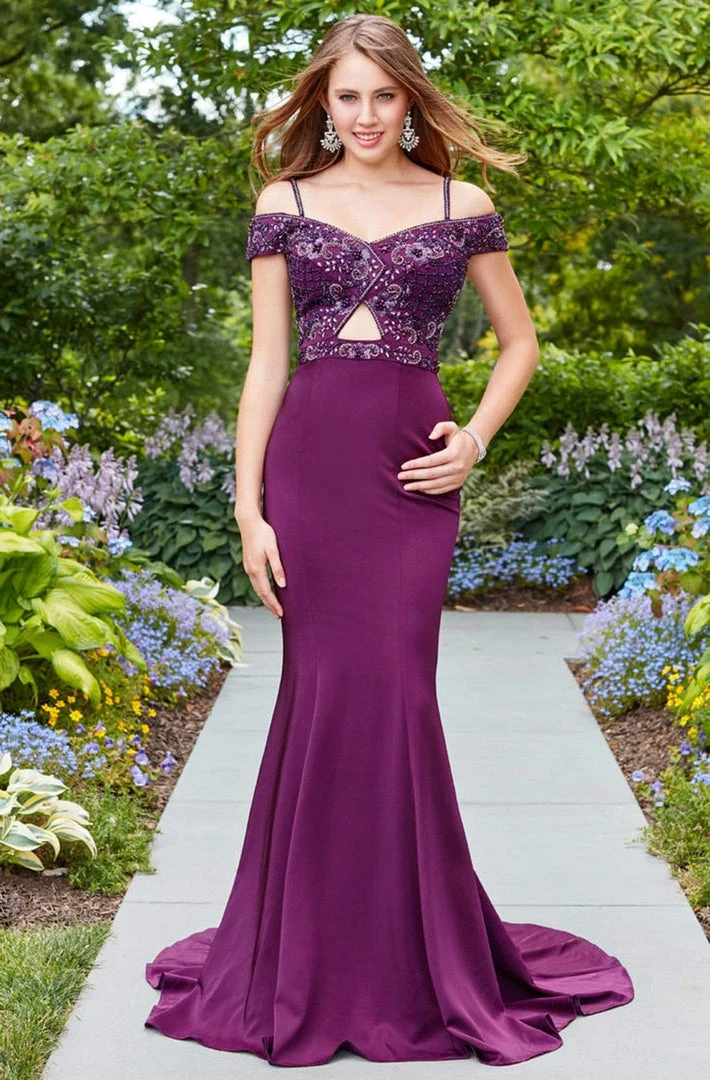 Glitter for the special occasion in this dress by Clarisse 3543. This long formal dress is styled with a V-neckline with thin straps and cold shoulders supporting the embellished bodice with front cutout. The back has a zipper closure while the skirt flares a trumpet silhouette with sweep train. Turn yourself into a head-turning beauty by slipping into this absolutely eye-catching Clarisse creation.