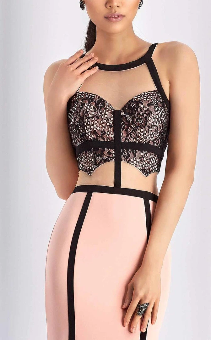 | Details: | Sleeveless, Lace bodice, Black trimming, Cutout back, Back zip closure, Sweep train |