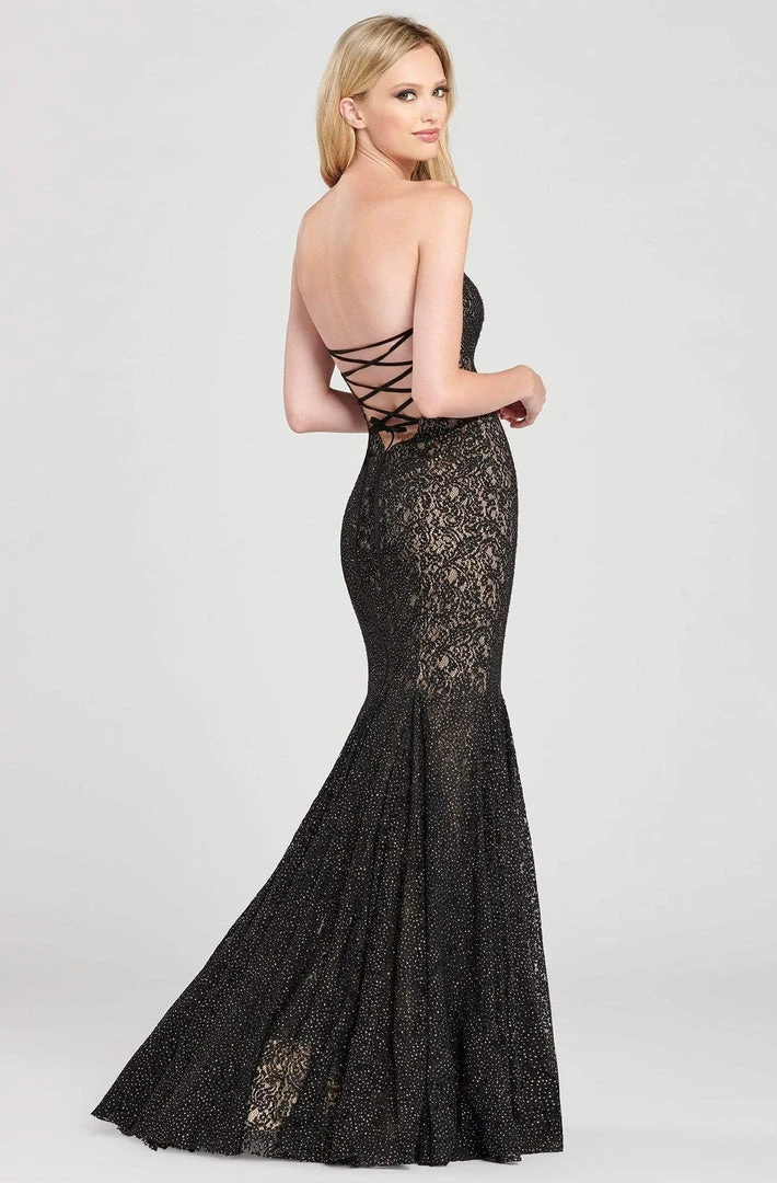 Join us in celebrating your beauty in a sophisticated dress from Colette for Mon Cheri CL12059. This lace dress allures in a strapless, straight across neckline with fitted bodice styled with a lace up back. The skirt forms a defined mermaid silhouette and runs at full length hem. Start your night out right with a stylish Colette for Mon Cheri look.