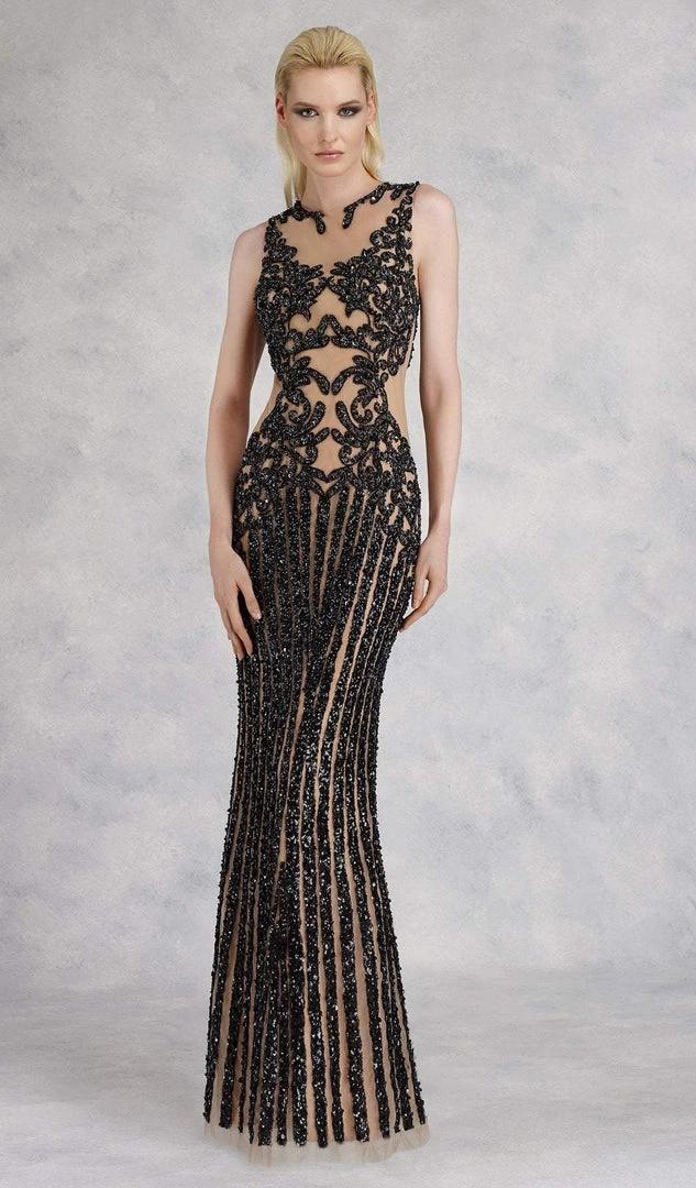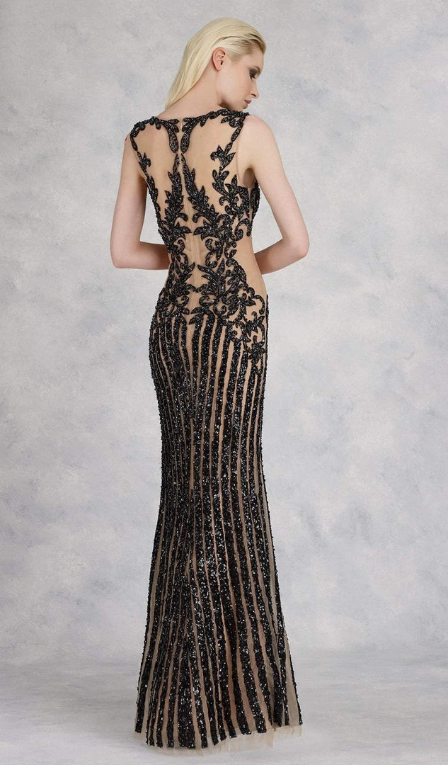 Formal Gowns Janique - 17007 Sparkly Nude Illusion Evening Gown In Black