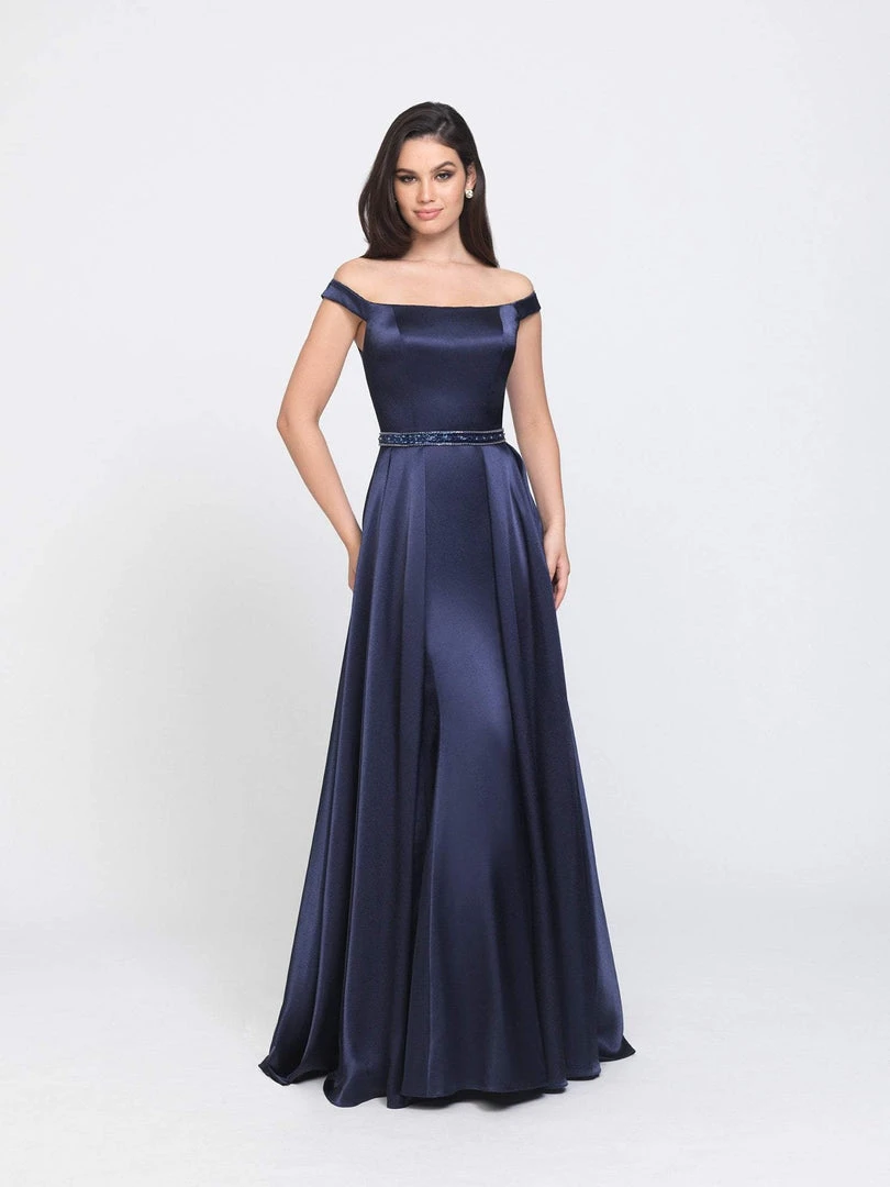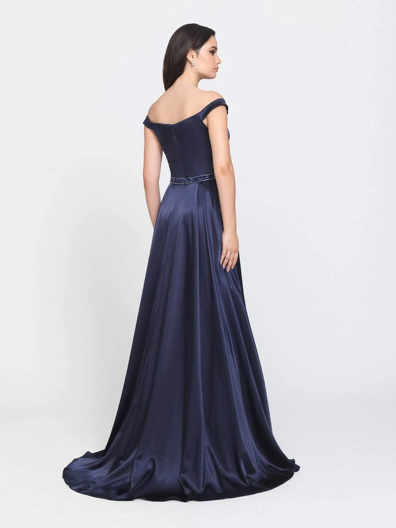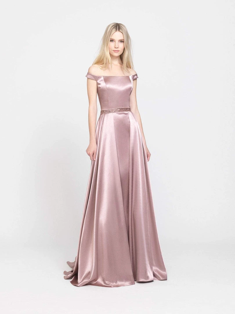 Gleam with elegance and exquisite beauty while wearing this Madison James 19-161 creation. Sleekly designed in a gleaming satin fabric with tailoring lines, this stunner shows an off shoulder neckline paired with mid-open back and slender arm straps. Molded with a gorgeous trumpet skirt and an embrace of tonal beaded band, the fluttering overskirt flows to meet the floor with a sweep of train. Mesmerize everyone with a breathtaking flair in this Madison James masterpiece.