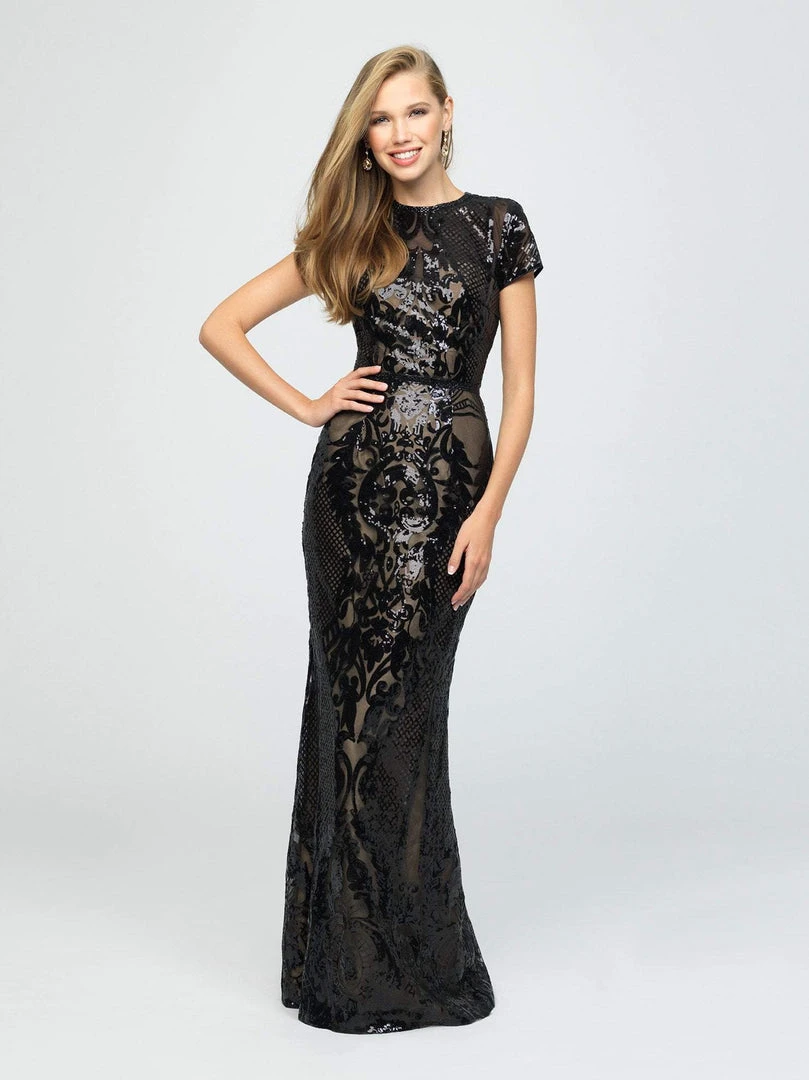 Look immaculately gorgeous in Madison James 19-253M. Fully ornate with sparkling sequins, this dress envisions in a jewel neckline with short sleeves. The bodice has a fitted silhouette and fashions a back keyhole and zipper closure. The skirt has a fit and flare silhouette and runs at full length hem. Dance all night in this dazzling style from Madison James.
