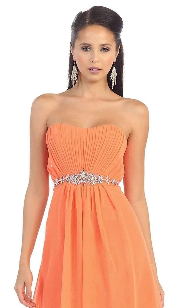 Dress to impress with this stylishly modest bridesmaid dress made of dazzling chiffon. Designed with a lovely sweetheart neckline, this stunner features an intricately ruched bodice and a laced up back. Adding to its exquisite design is a cascade of lavishly pleated skirt. This dress is sure to be an attention-grabber in any occasion.