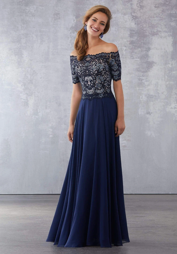 Feel divine in a heavenly dress from MGNY By Mori Lee 71710. This embroidered dress fashions an off-shoulder neckline with quarter length sleeves. The fitted bodice gives way to a full length A-line skirt. Turn into such an irresistible vision that captures everyones interest in this MGNY By Mori Lee.
