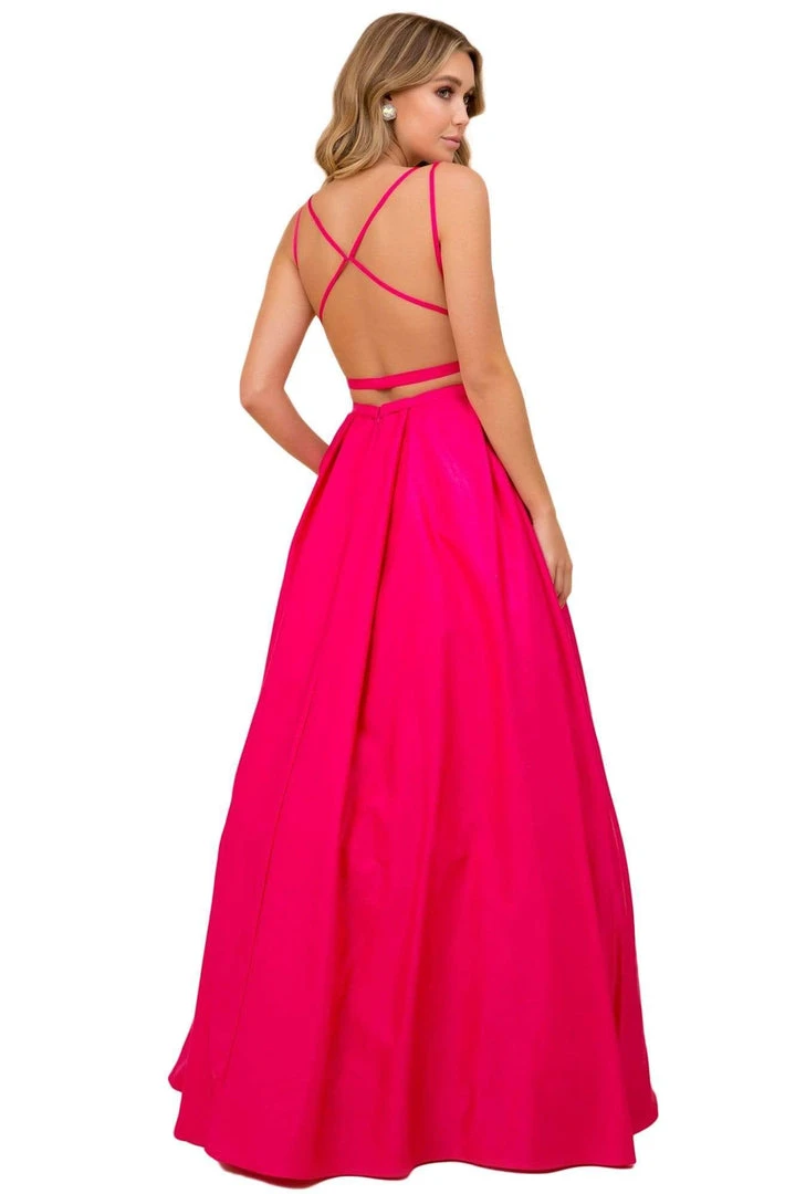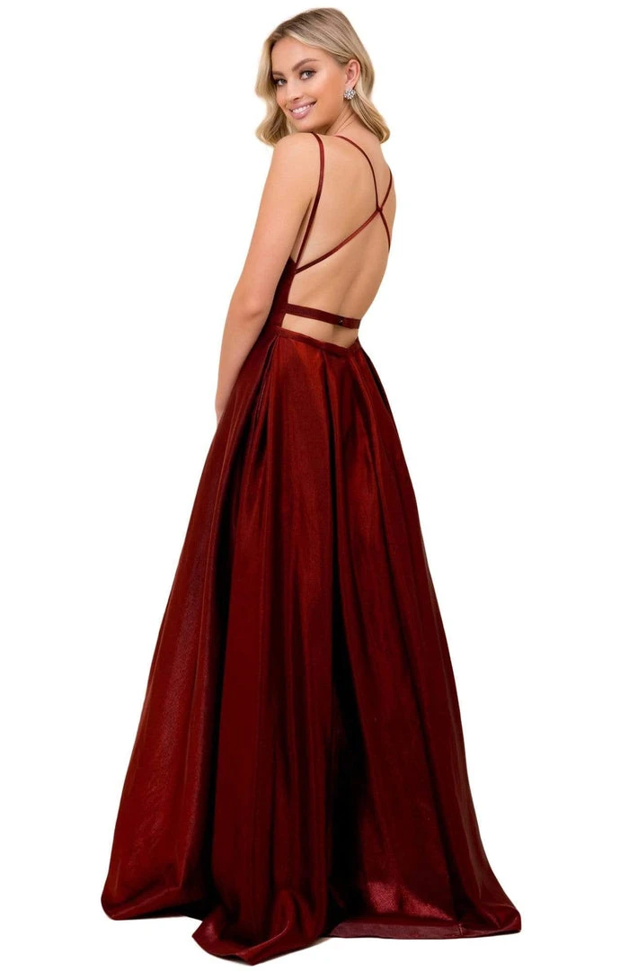 Flourish timeless elegance as you sway on the dancefloor in this Nox Anabel M412 creation. Exceptionally rendered with pleats gathering on its bodice, this dress reveals a deep v-neckline with double spaghetti straps. The banded open back reveals crisscrossing straps as a thin band embraces the waist. The A-line skirt beautifully cascades into a full-length hemline. Glow with utter femininity in this timeless Nox Anabel masterpiece.