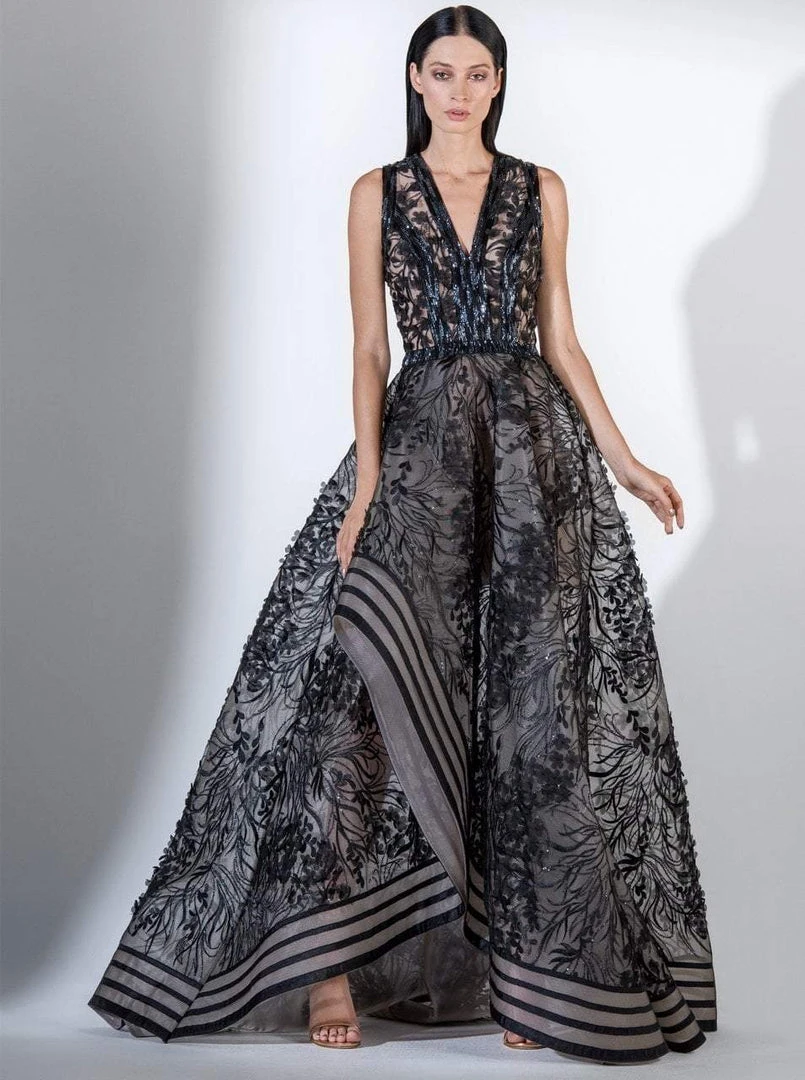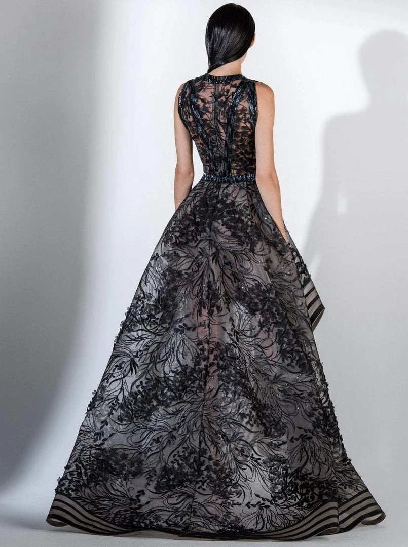Fantasize a night of eloquent style and poise at your black-tie event while wearing this charming gown from Saiid Kobeisy 3420. Brandishes in a sleeveless, V-neckline with entire gown adorned with floral appliques and glittering embellishments. The back has a zipper closure and the draped skirt forms a high-low ballgown silhouette. Go with fun, gorgeous, and youthful look by Saiid Kobeisy.