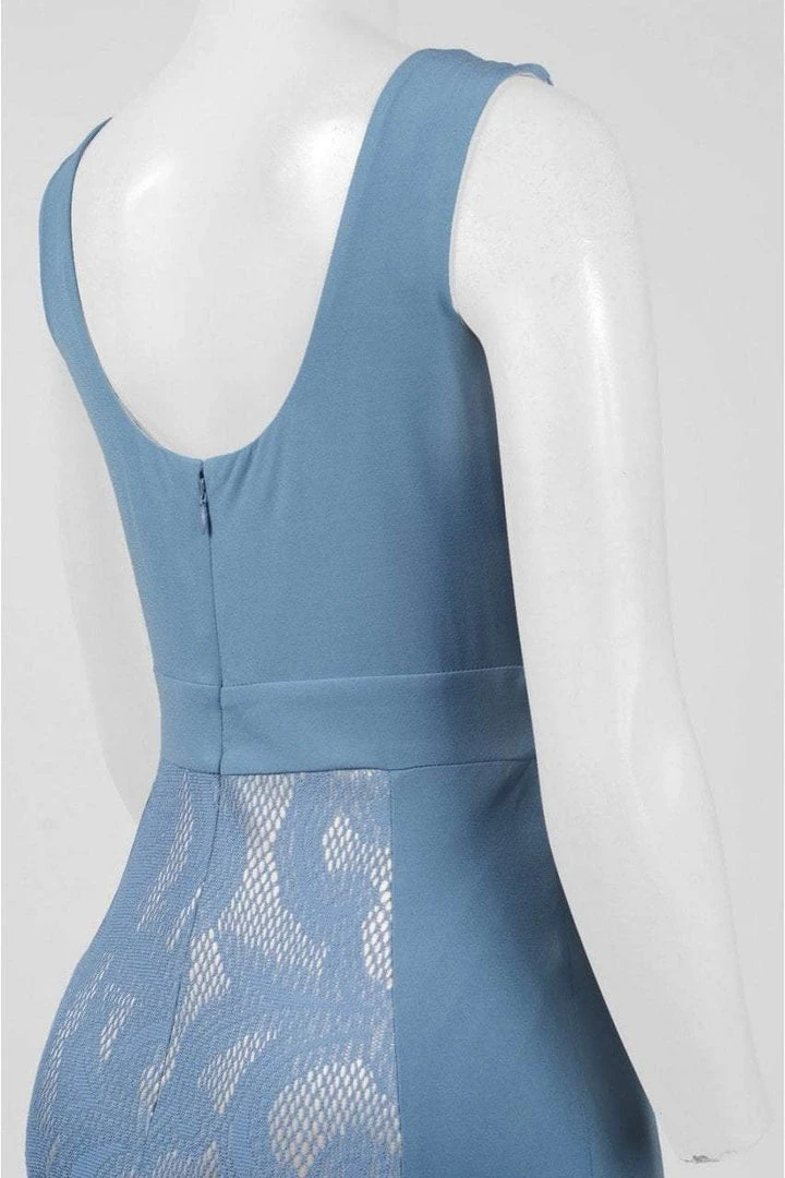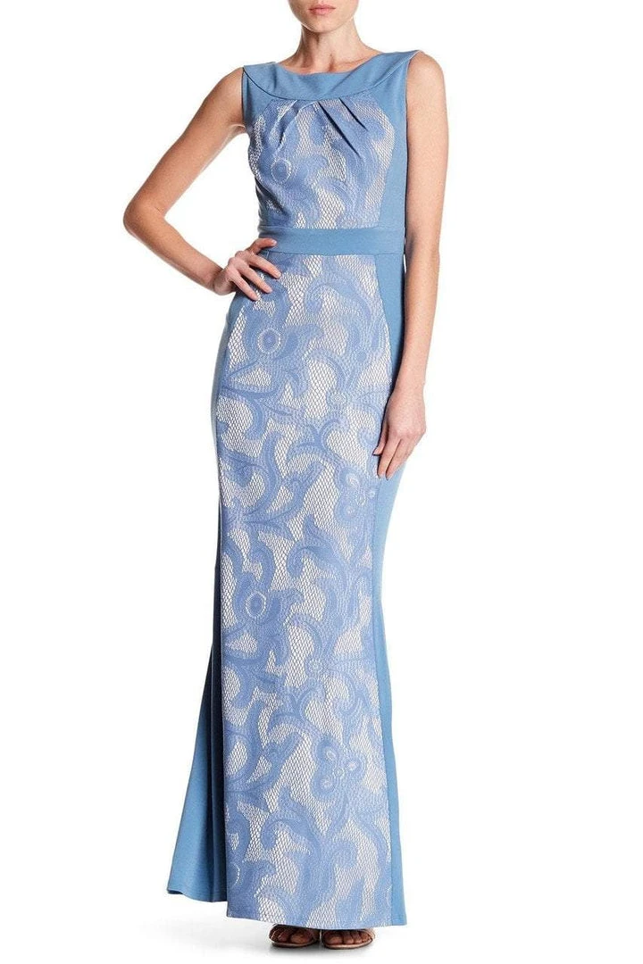 | Details: | Jersey, Sleeveless, Lace Panels, Pleated Neckline, Scoop Open Back, Invisible Back Zipper, Hook and Eye Closure, Inset Waistband, Full Length Hem |
