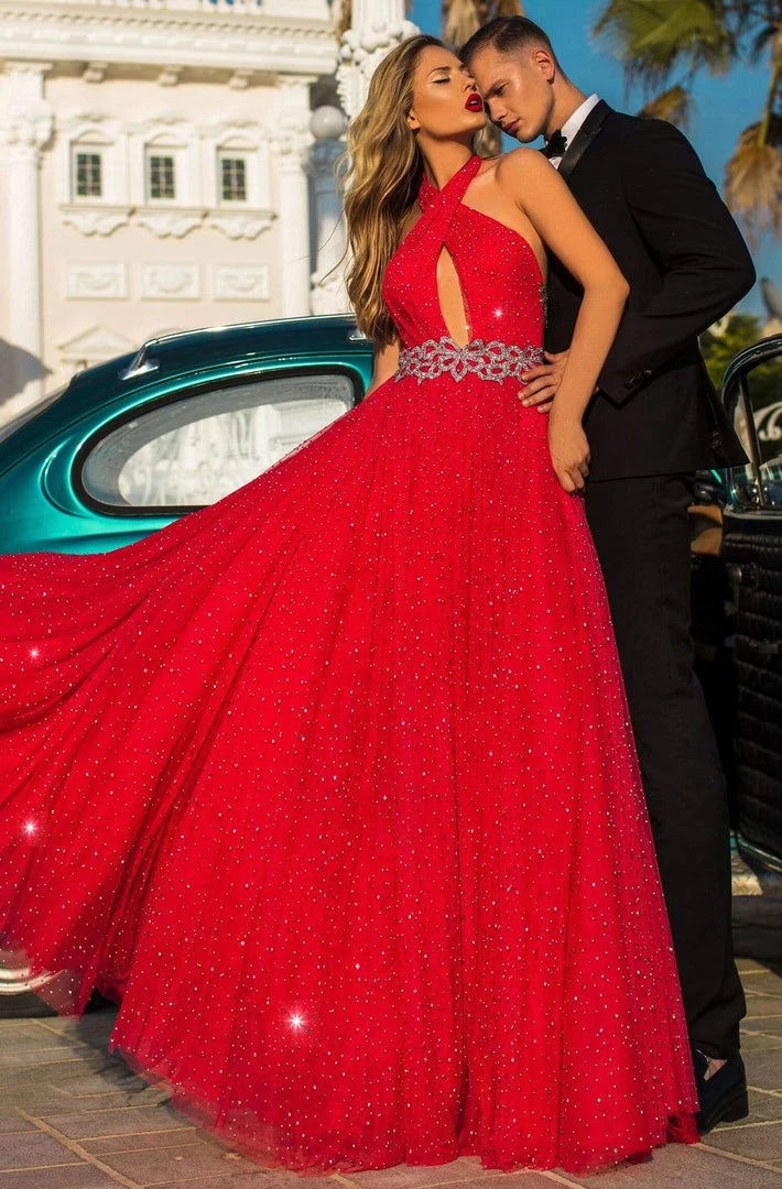 You are more than gorgeous when you wear this unbeatable dress from Tarik Ediz 50710. This bedazzled masterpiece fashions a sleeveless, cross halter neckline with fitted bodice styled with a front keyhole and an open back. The skirt flourishes a full length A-line silhouette. Feel dainty and feminine in this enchantingly designed Tarik Ediz dress.