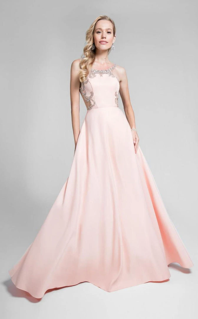 Get ready for everyone to stop and stare when you show up in this Terani Couture 1712P2887. Crystal beaded ornate scrolls adorn the fresh neckline of this matte mikado red carpet ready ball gown from our prom collection. This special occasion dress is the perfect dress for prom, features a nude illusion insets and back decollete to the waist. This enchanting Terani Couture is sure to make you the center of everyone’s attention